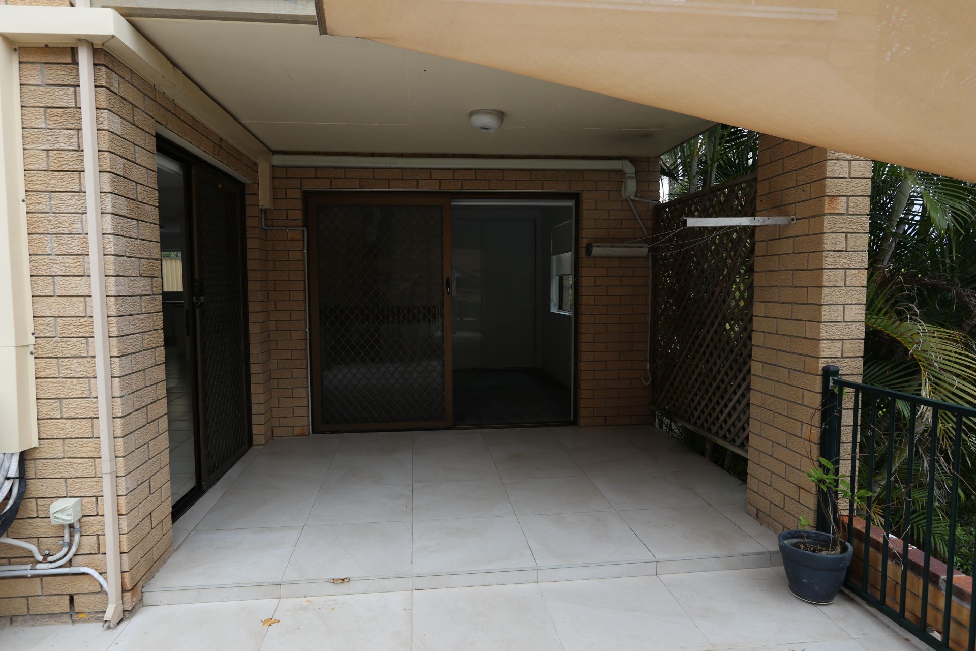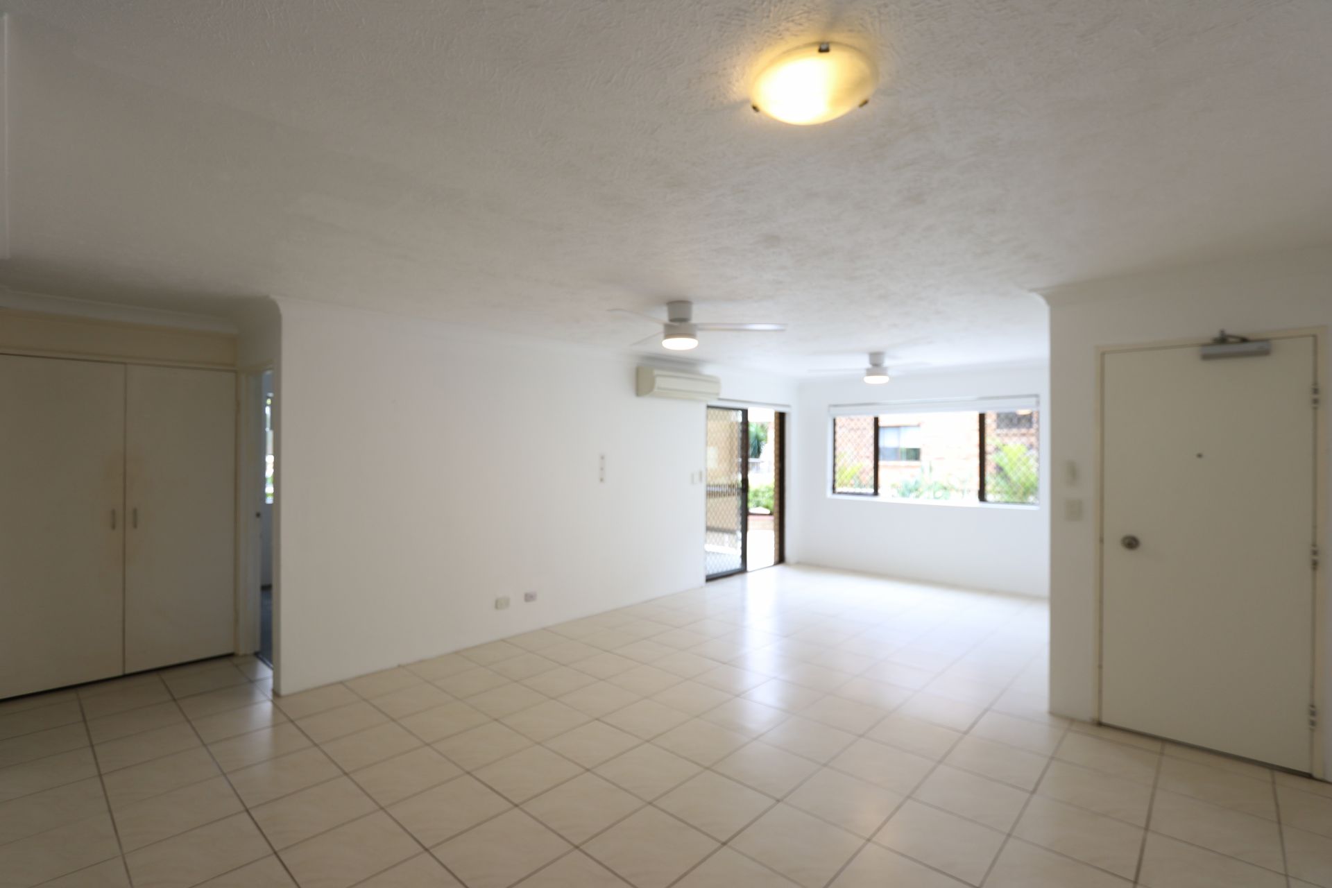 Large living area with air conditioner leading onto large sized balcony