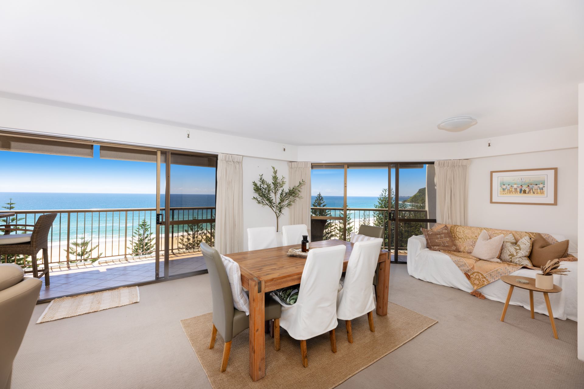 Experience the ultimate in waterfront living, perched atop the 10th level of the tightly held ‘Esplanade’ building in Burleigh Heads. This expansive, North-East facing half-floor residence offers unparalleled serenity with breathtaking views of the ocean that stretch North & South along the coastline.