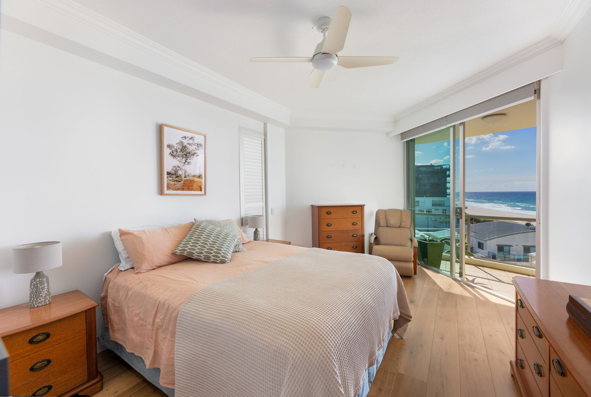 Elevated on the 6th floor of the prestigious ‘Palm Springs Residences’, this sunlit beachfront apartment offers an unparalleled opportunity for a coastal lifestyle. Just moments away from the pristine sands of Palm Beach, this exclusive address provides private access to one of the Gold Coast’s most sought-after beaches.